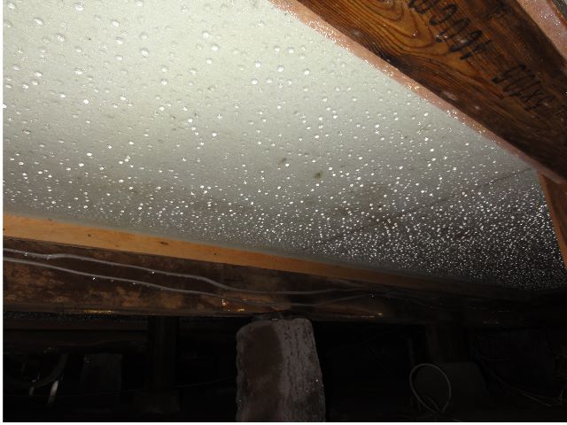 床下に入ると驚くことに床の裏に無数の水滴が。