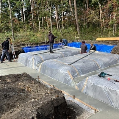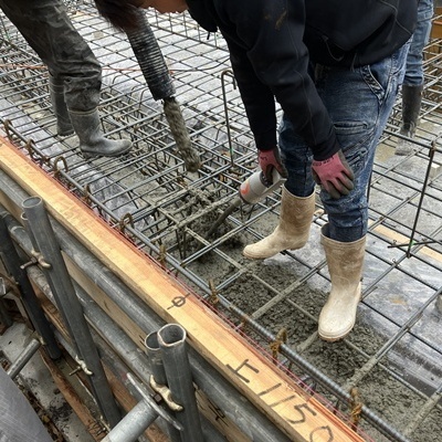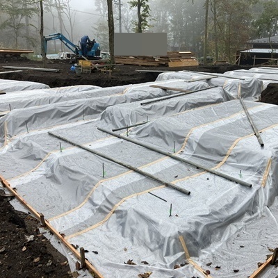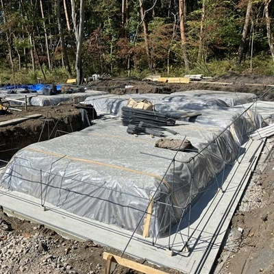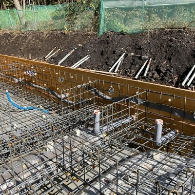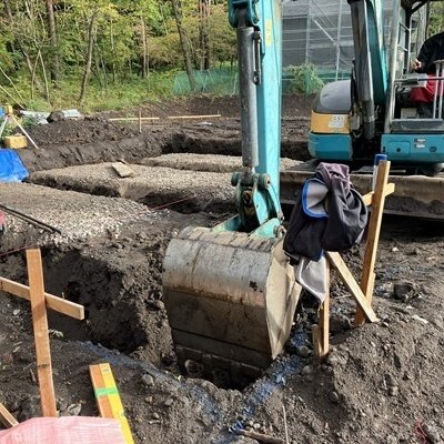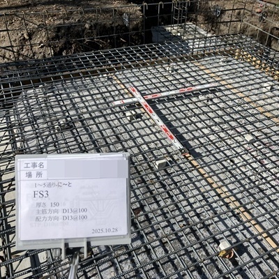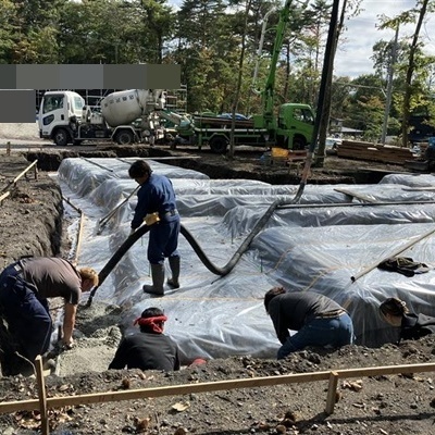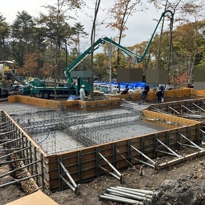 打設作業中です 打設作業中です 構造に係るコンクリートは、打設のたびに現場で試験を行います この建物は耐圧盤に段差があるので、2日に分けて耐圧盤部分にコンクリー トを流し込みます(2日目の作業です) コンクリートの打設作業です 現場で生コンの試験も行います 基礎の耐圧盤の部分にコンクリートを流しこみます 設備の配管、スリーブを設置しました 型枠の作業が終わりました 型枠の作業が終わりました 型枠の作業が進んでいます 外側の型枠作業が始まりました 耐圧スラブの配筋状況です 配筋の状況です 基礎配筋が終わりました 基礎配筋が終わりました 基礎配筋作業がはじまりました 基礎の鉄筋を搬入しています 墨出し作業を行っています 捨てコンの作業が終わりました コンクリートを平坦にならしています 捨てコンを打設します ポリフィルムを敷きました 基礎の下からの湿気を防ぐためにポリフィルムを建物全体に敷きました 掘削の作業ももうすぐ終わります 掘削をしながら砕石を敷き、しっかりと転圧をしました 掘削作業が進んでいます 掘る深さを確認しました 基礎を作るために掘削作業を行います 建物の位置を出す作業をおこないました 樹影に憩う家 工事概要在来軸組工法 2階建て2025年10月着工 2026年6月竣工予定所在地:軽井沢町