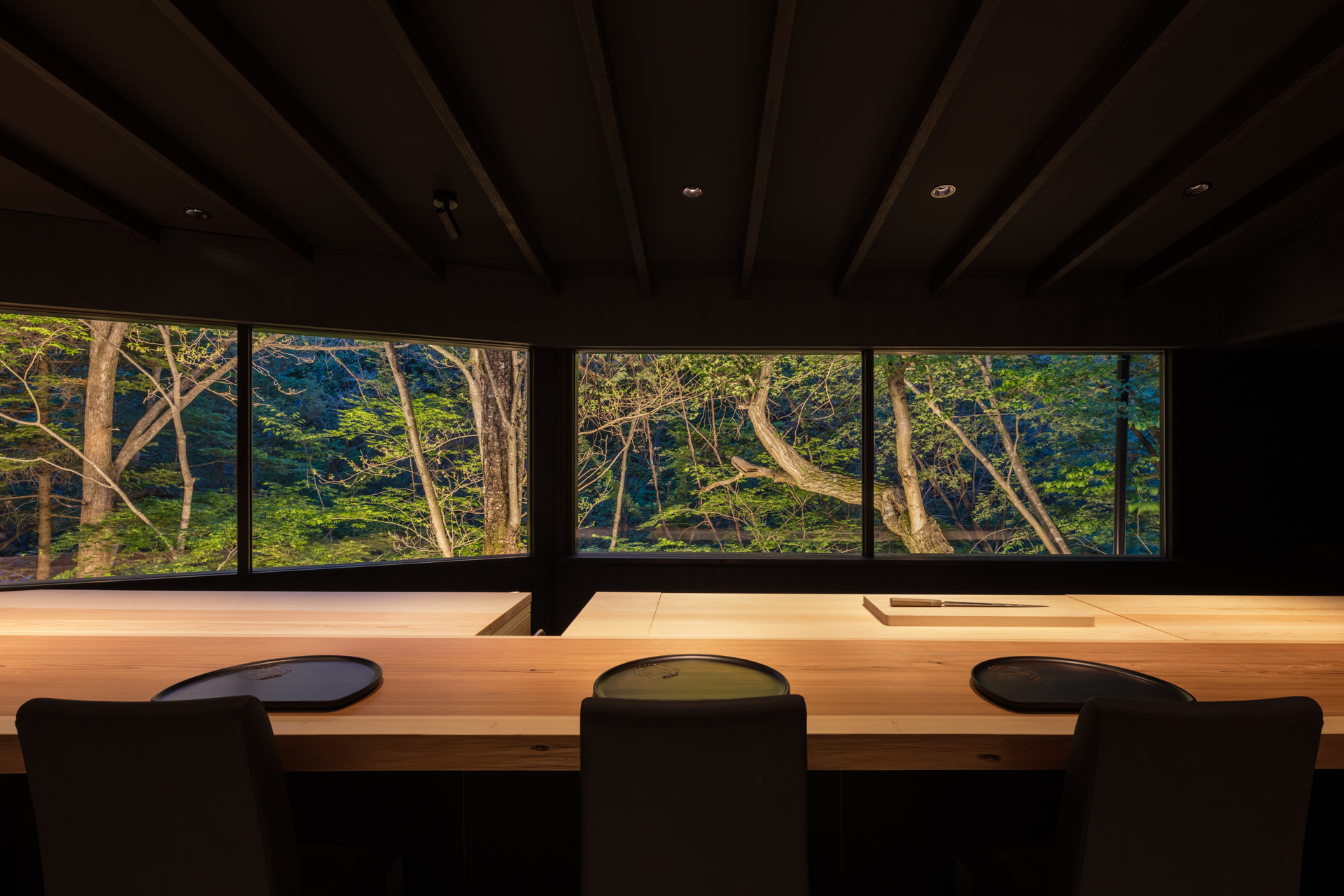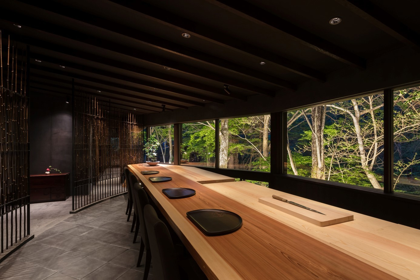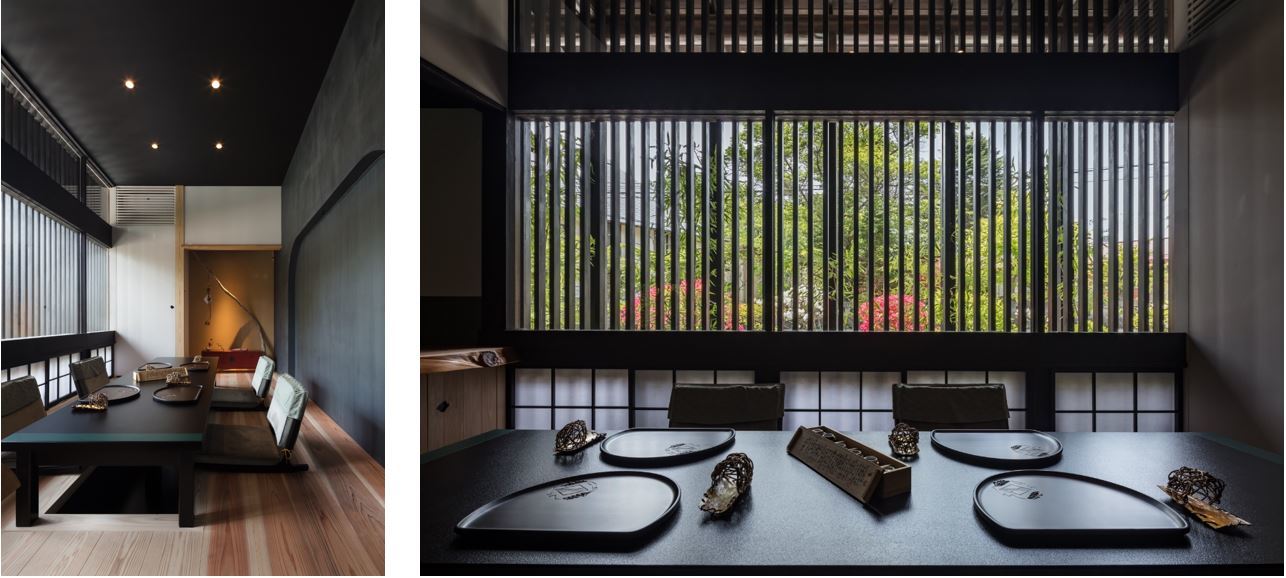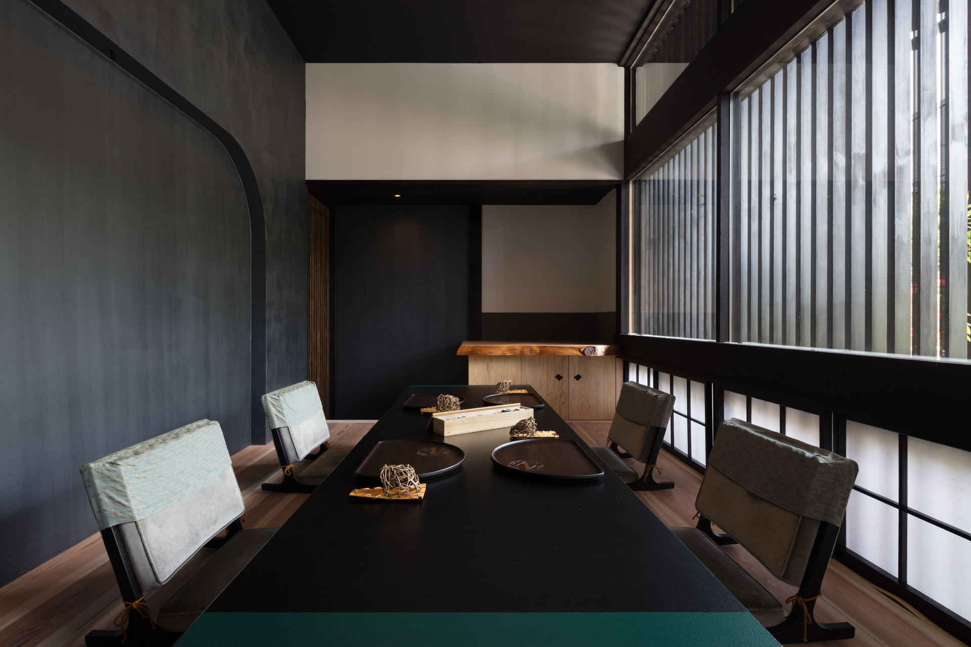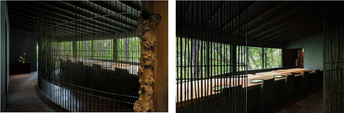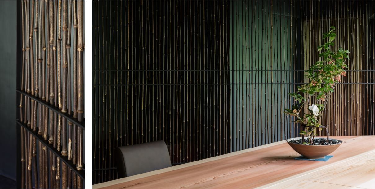 6席のカウンター席は黒岩にちなみ、黒竹のスクリーンで囲まれています。