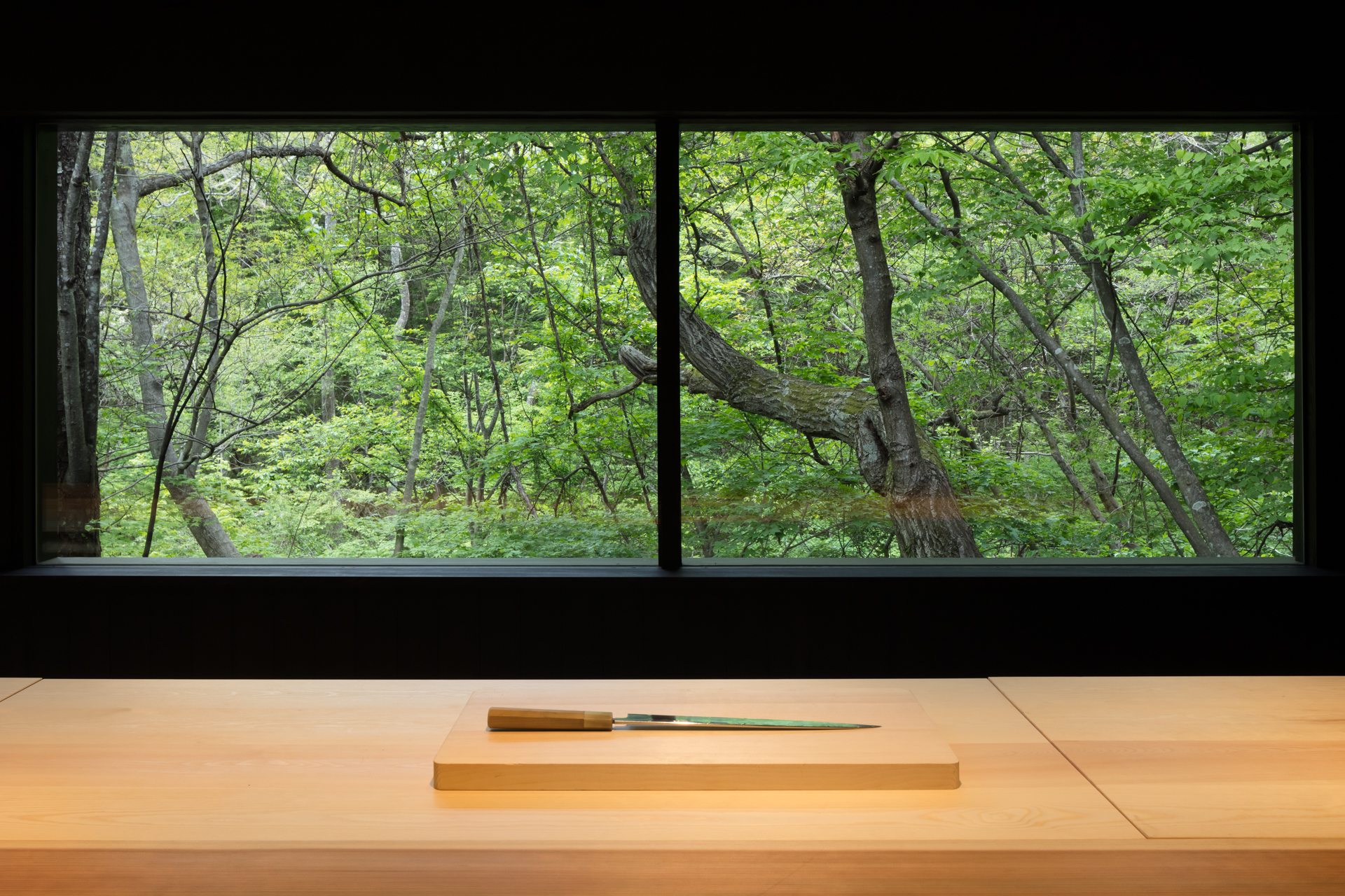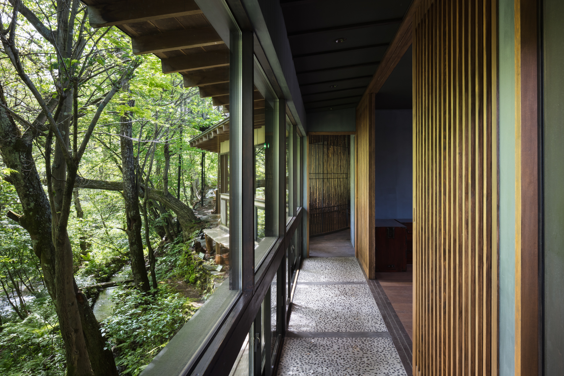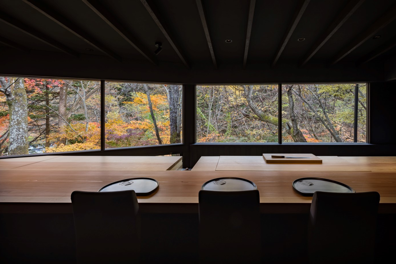 湯川に面した窓は、ファインダーを覗き込むよう景色を切り取ることをコンセプトとして計画しました。