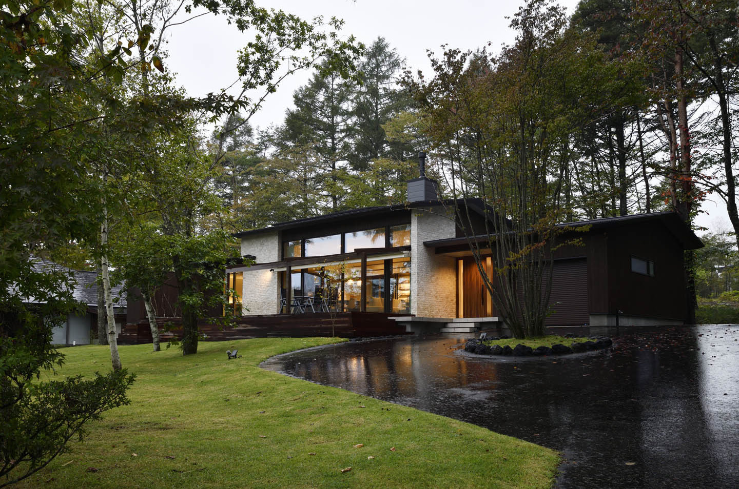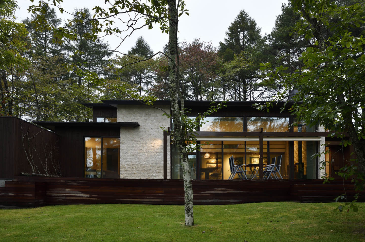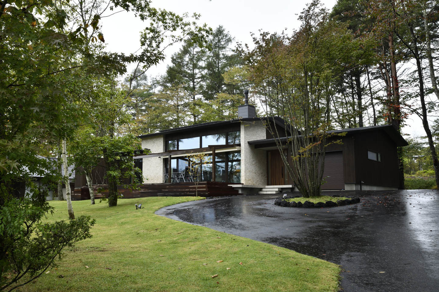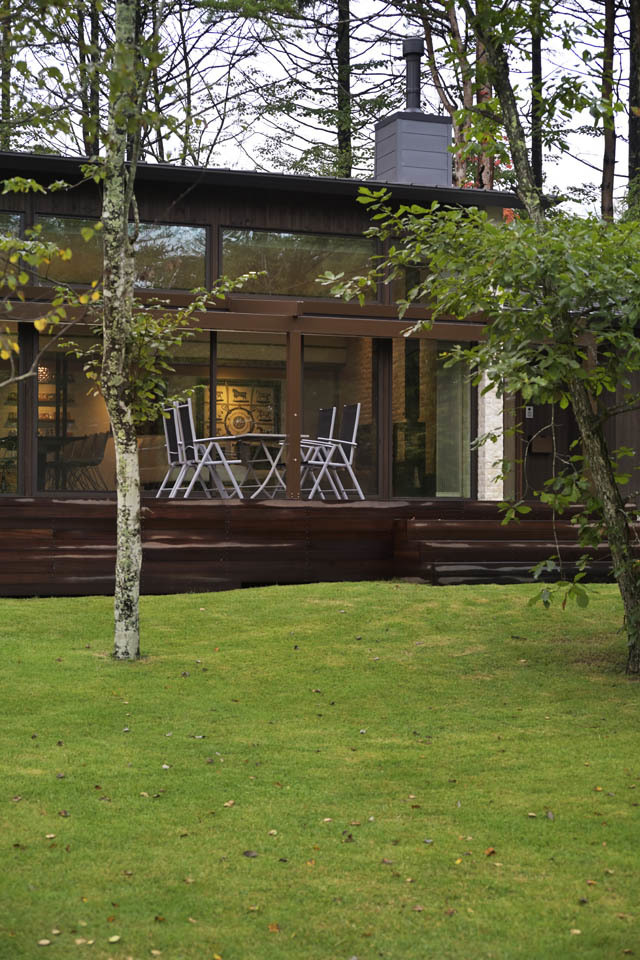 豊かな緑に囲まれた別荘地の一角に建つ別荘建築。