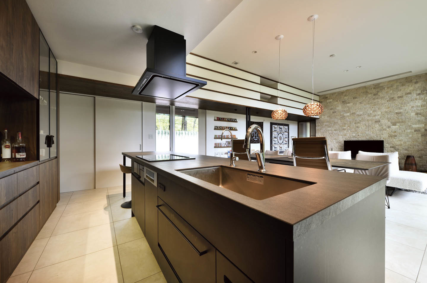 キッチンカウンターと一体になったバーカウンターのようなスペースが特徴的なキッチンです。