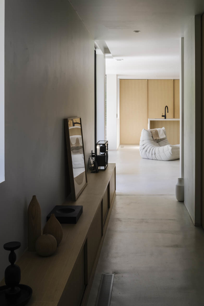 高さを切り替えずに、一律の高さで繋がる天井と床。