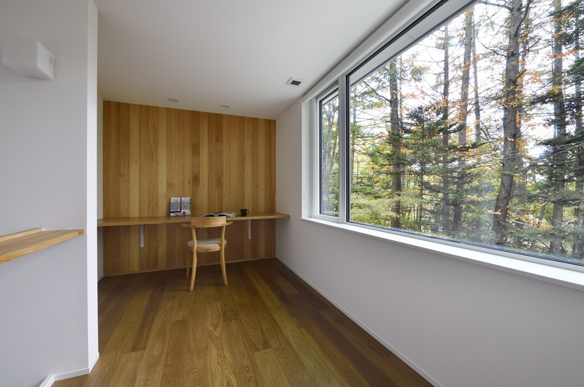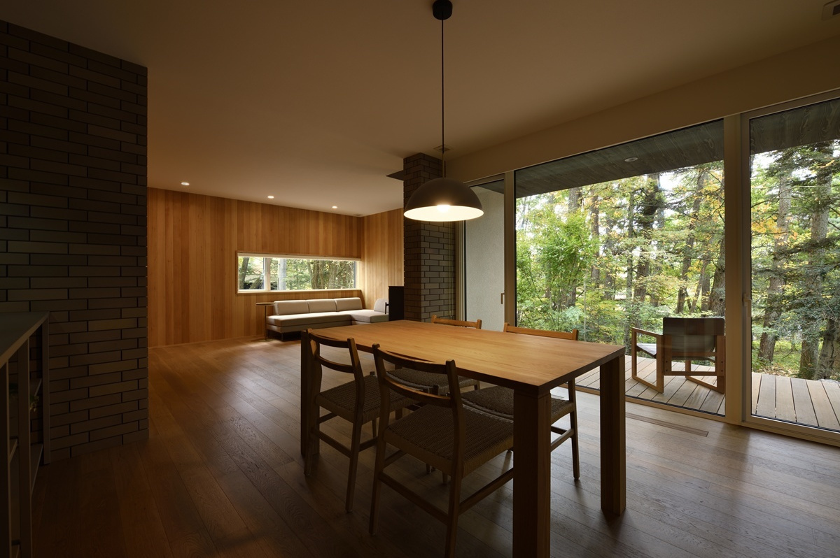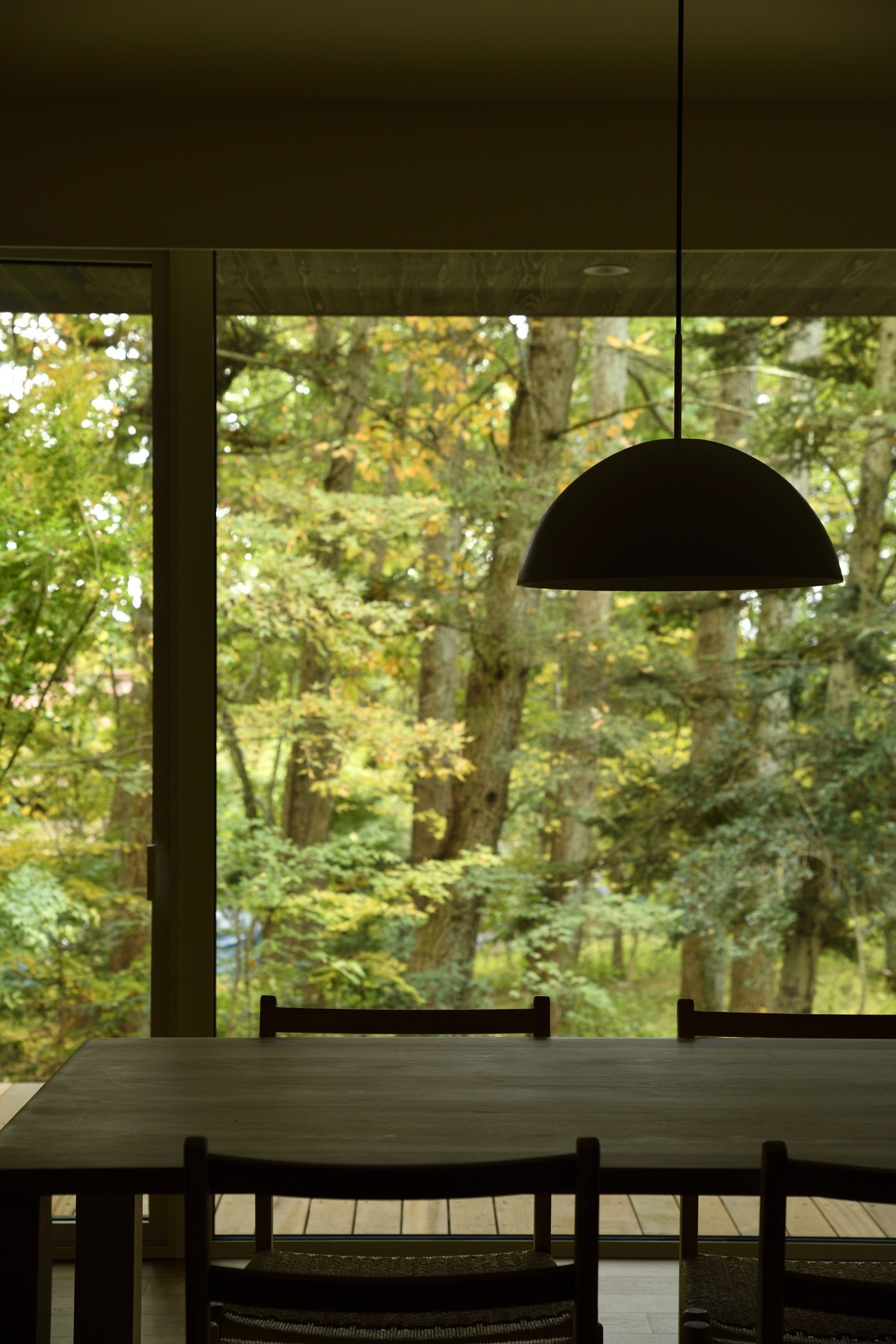 計算された窓の配置は、リビング、ダイニング、キッチン、どこにいても軽井沢の豊かな四季を感じさせます。