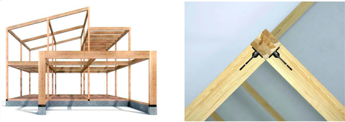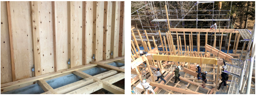軽井沢建築社では、大きな開口部や大空間の木造建築や、スキップフロアの別荘にはSE構法を採用しています。