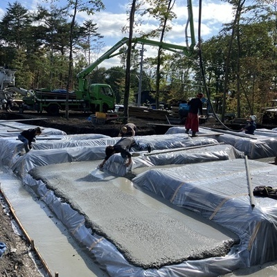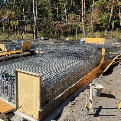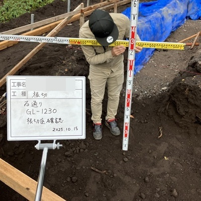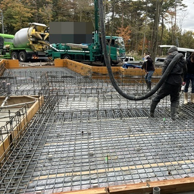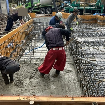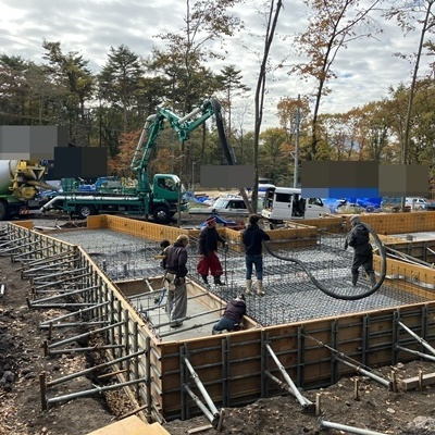 打設作業中です 打設作業中です 構造に係るコンクリートは、打設のたびに現場で試験を行います この建物は耐圧盤に段差があるので、2日に分けて耐圧盤部分にコンクリー トを流し込みます(2日目の作業です) コンクリートの打設作業です 現場で生コンの試験も行います 基礎の耐圧盤の部分にコンクリートを流しこみます 設備の配管、スリーブを設置しました 型枠の作業が終わりました 型枠の作業が終わりました 型枠の作業が進んでいます 外側の型枠作業が始まりました 耐圧スラブの配筋状況です 配筋の状況です 基礎配筋が終わりました 基礎配筋が終わりました 基礎配筋作業がはじまりました 基礎の鉄筋を搬入しています 墨出し作業を行っています 捨てコンの作業が終わりました コンクリートを平坦にならしています 捨てコンを打設します ポリフィルムを敷きました 基礎の下からの湿気を防ぐためにポリフィルムを建物全体に敷きました 掘削の作業ももうすぐ終わります 掘削をしながら砕石を敷き、しっかりと転圧をしました 掘削作業が進んでいます 掘る深さを確認しました 基礎を作るために掘削作業を行います 建物の位置を出す作業をおこないました 樹影に憩う家 工事概要在来軸組工法 2階建て2025年10月着工 2026年6月竣工予定所在地:軽井沢町