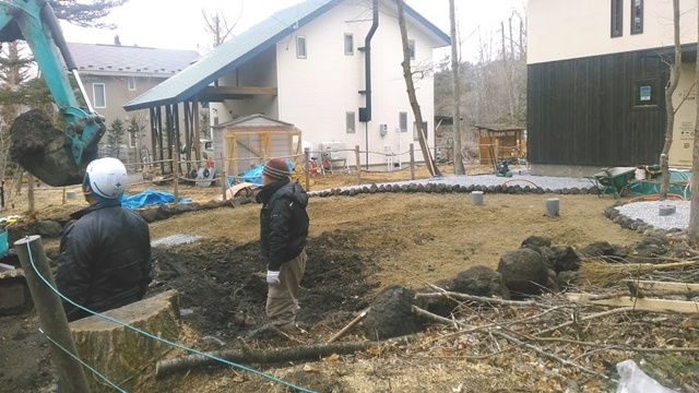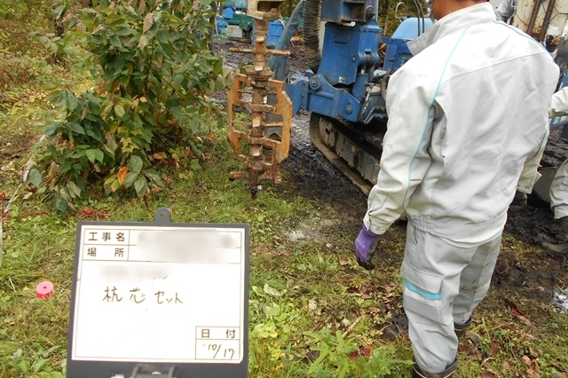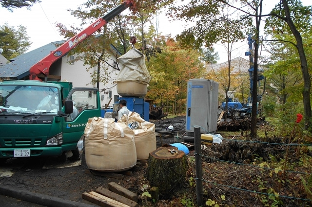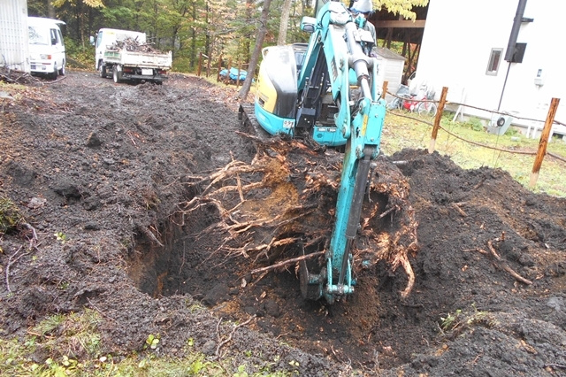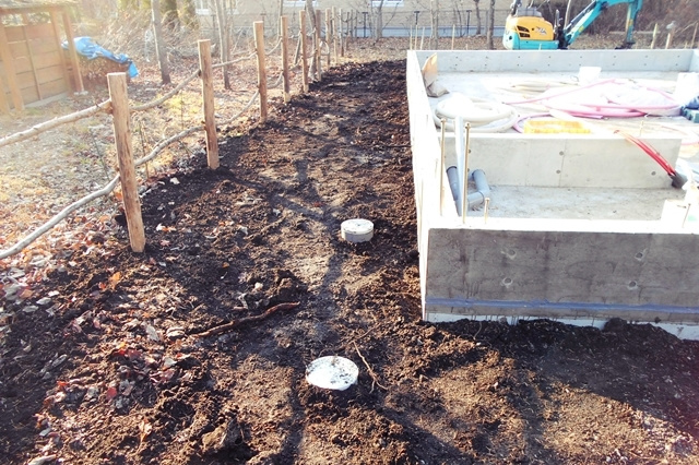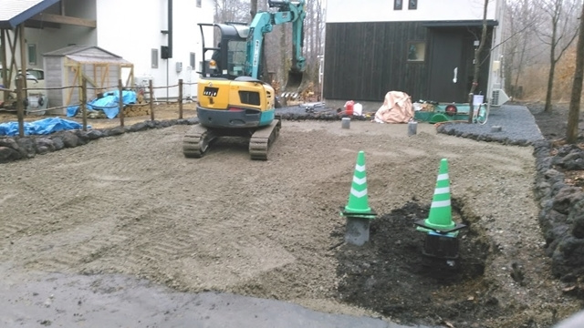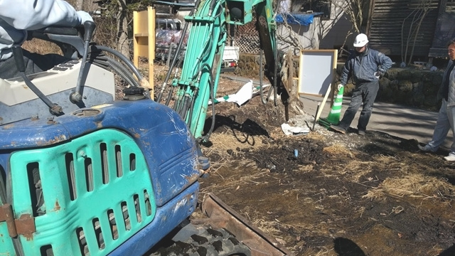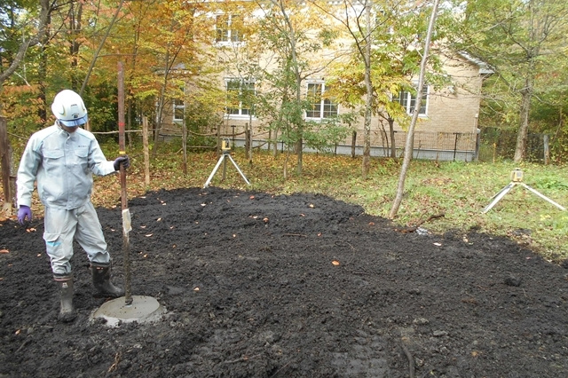 伐根作業の後は地盤改良工事に進みます。今回の敷地での地盤調査の結果、地盤改良を行う方がベターという結果でしたので、建物の重さに応じた最適な改良工事を行います。目に見えない土の中だからこそ、必ず地盤調査を行い、地盤の強さを明確にしておく必要がありますね。