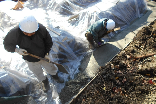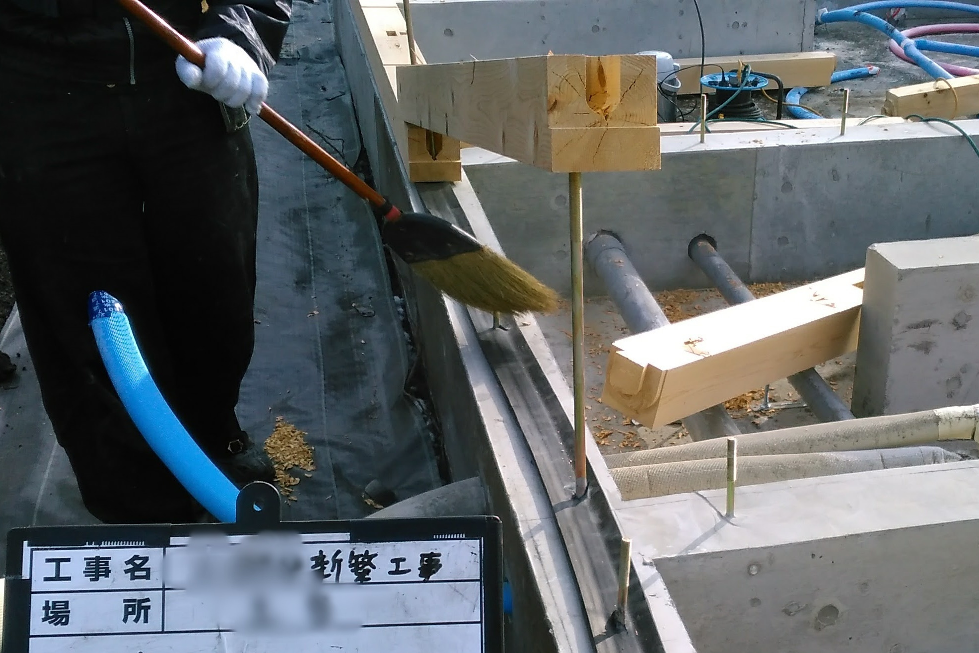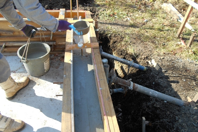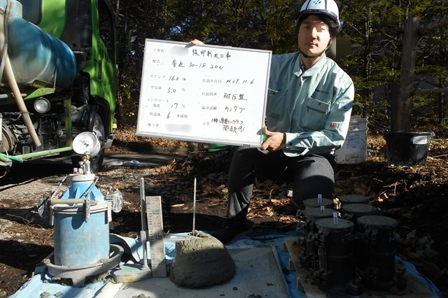 コンクリートを打設する前に運ばれて来たコンクリートが計画通りの強さを発揮できるか打設直前に試験を行います。当日の気温にも左右されますので、打設の直前にスランプ試験を行って最終確認を行います。結果は、もちろん合格です。