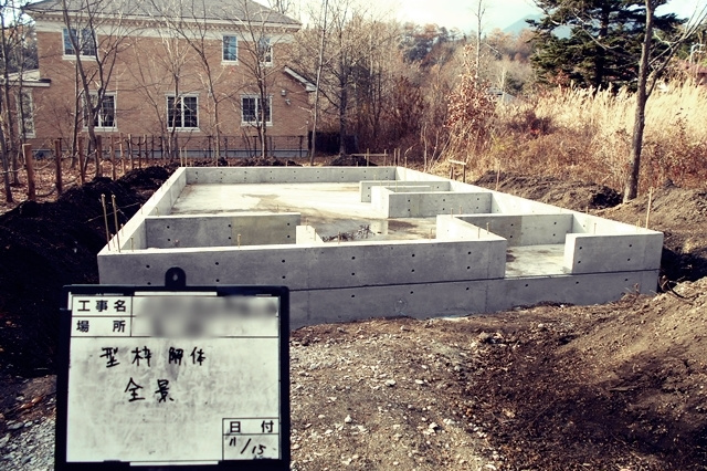 一定の養生期間を経て、型枠を解体しました。毎度のことながら型枠の解体工事は楽しみです。一枚ずつ型枠が外れ、ピシッと美しく仕上がった基礎が姿を現しました。手前味噌ながら、今回も非常に美しい!