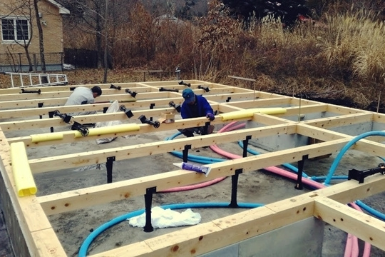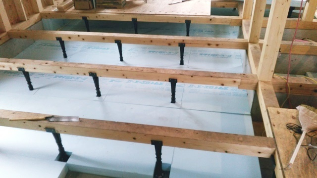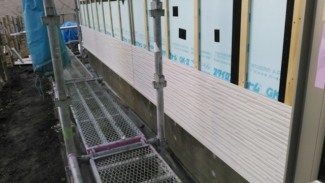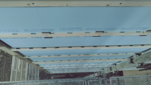 基礎断熱材も施工が始まりました。今回は1台のエアコンで床下から1階全体を暖めるパッシブ冷暖システムを採用しています。床下の暖かさを効率的に室内に届けるよう、基礎断熱材を基礎全体に敷き詰めます。