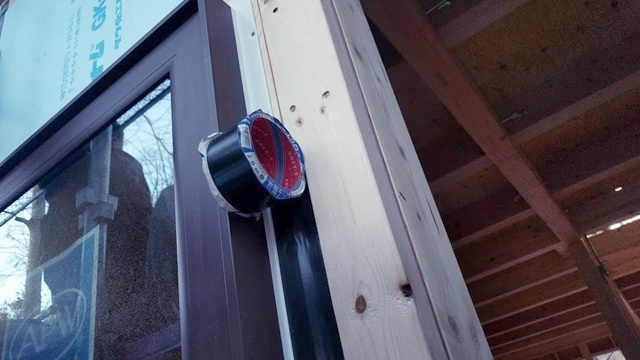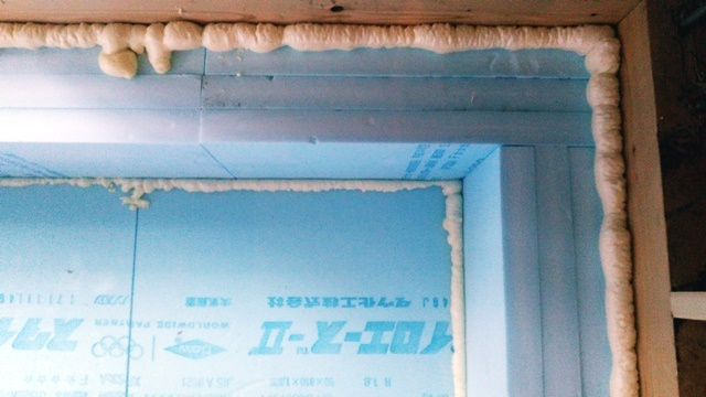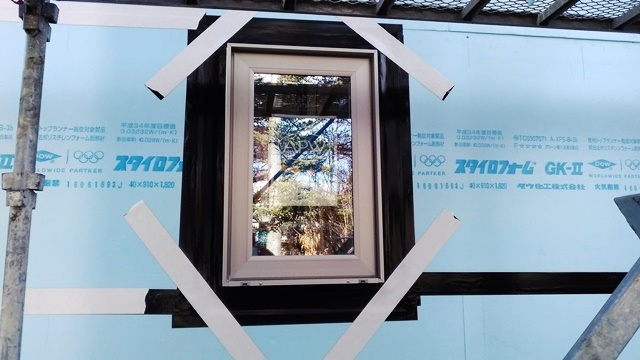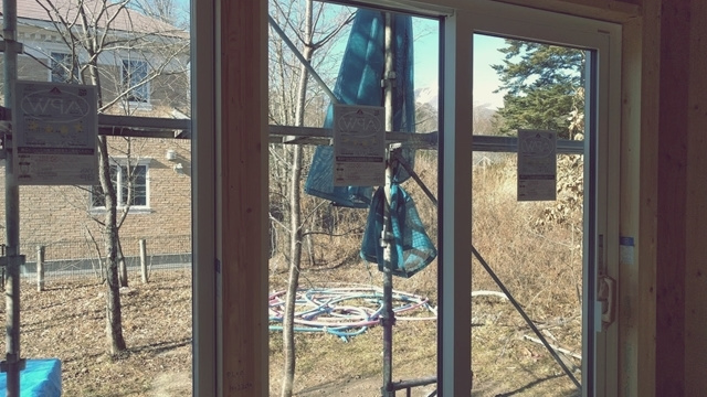 リビングのサッシも取り付きました。窓から逃げていく暖かさは壁の5~8倍と言われています。ですので面積の大きなサッシにはトリプルガラスを使用して、建物全体の熱損失を抑えています。