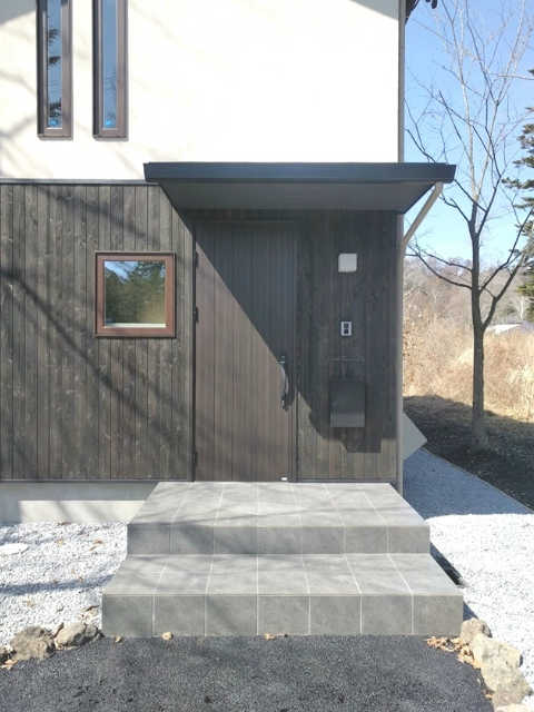 最後の写真は玄関ドアです。ポーチのタイルも仕上がり、O様ご家族を迎え入れる準備が整いました。間もなく御引渡を迎え、O様ご家族の新生活がスタートします。