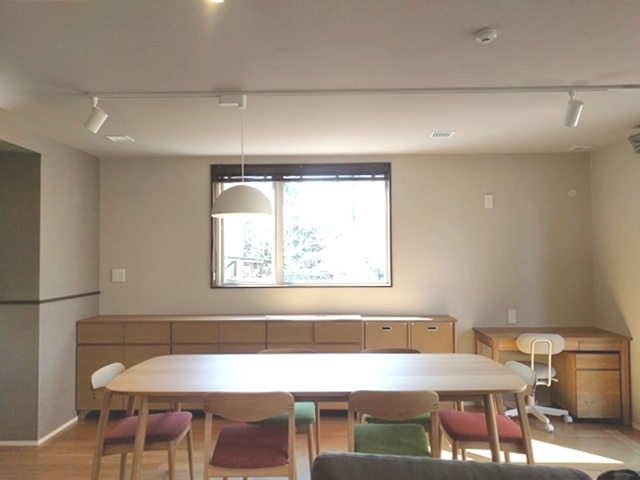 O様邸のフローリングには、木の良さを活かしながら日々の暮らしやすさも追求し、天然銘木突板の上に超耐久のシルク塗装を施した材料を使用しています。木目が美しく、清掃性も良く、足ざわりも心地よく、三拍子揃った材料です。