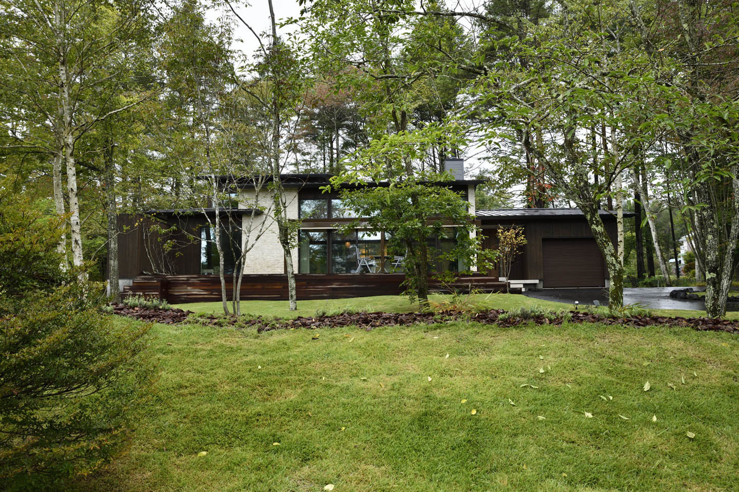 豊かな緑に囲まれた別荘地の一角に建つ別荘建築。