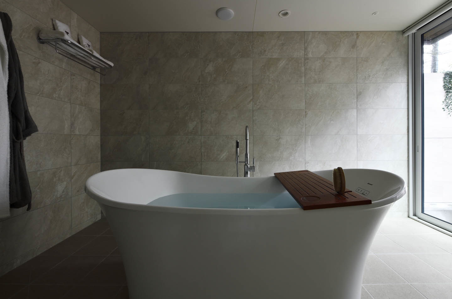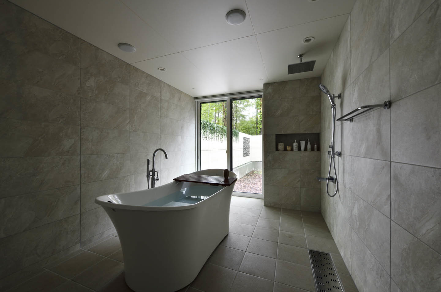 造作浴室。バスタブもクライアント拘りの品。