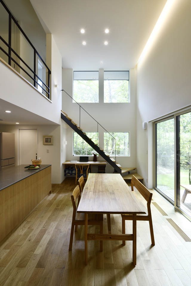 ダイニングは天井は2階までつながる大空間の吹抜け。