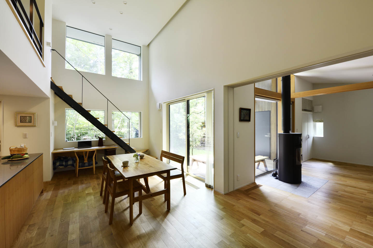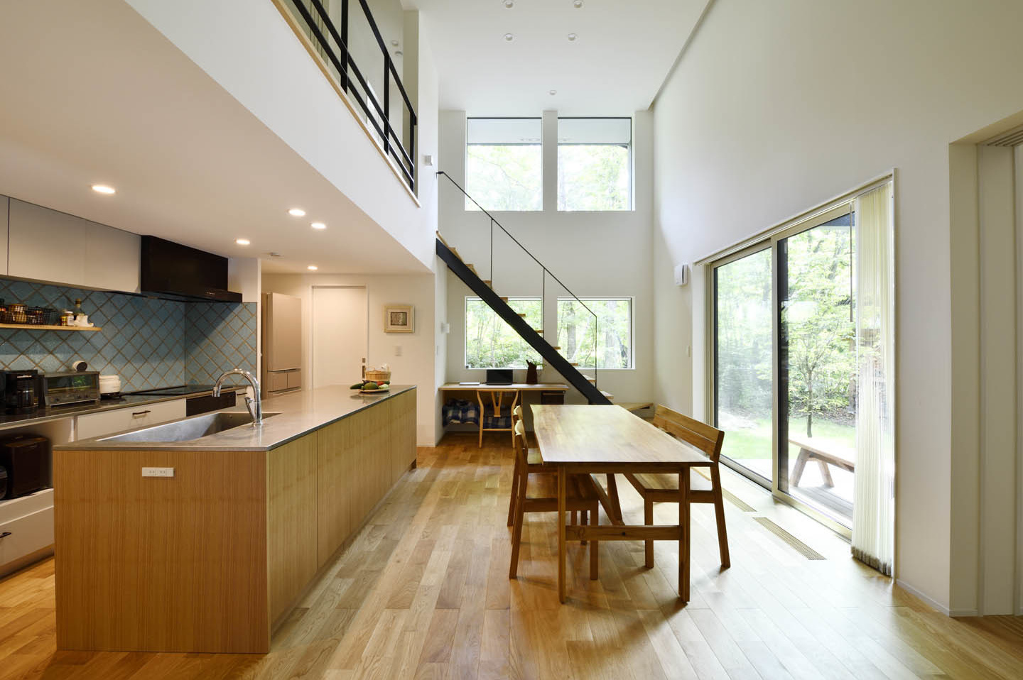 2階の天井まで吹き抜けたダイニング空間は家族のコミュニケーションが行き交う集いの場になりました。