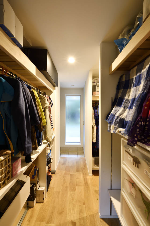 ファミリークローゼットも洗濯脱衣室と繋がる様に家事動線を考慮し、計画しました。