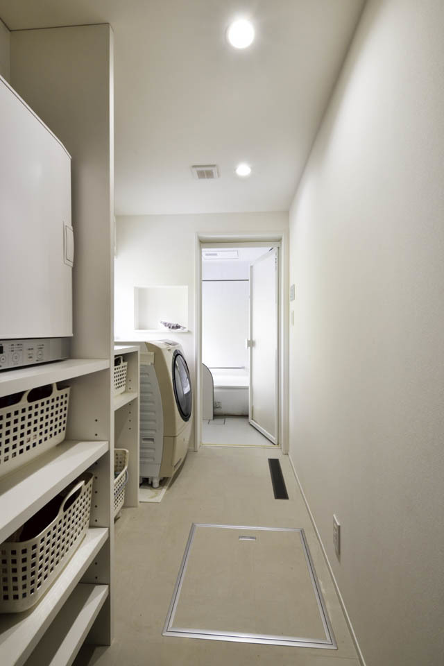 洗濯脱衣室スペースはキッチンの裏側に計画。