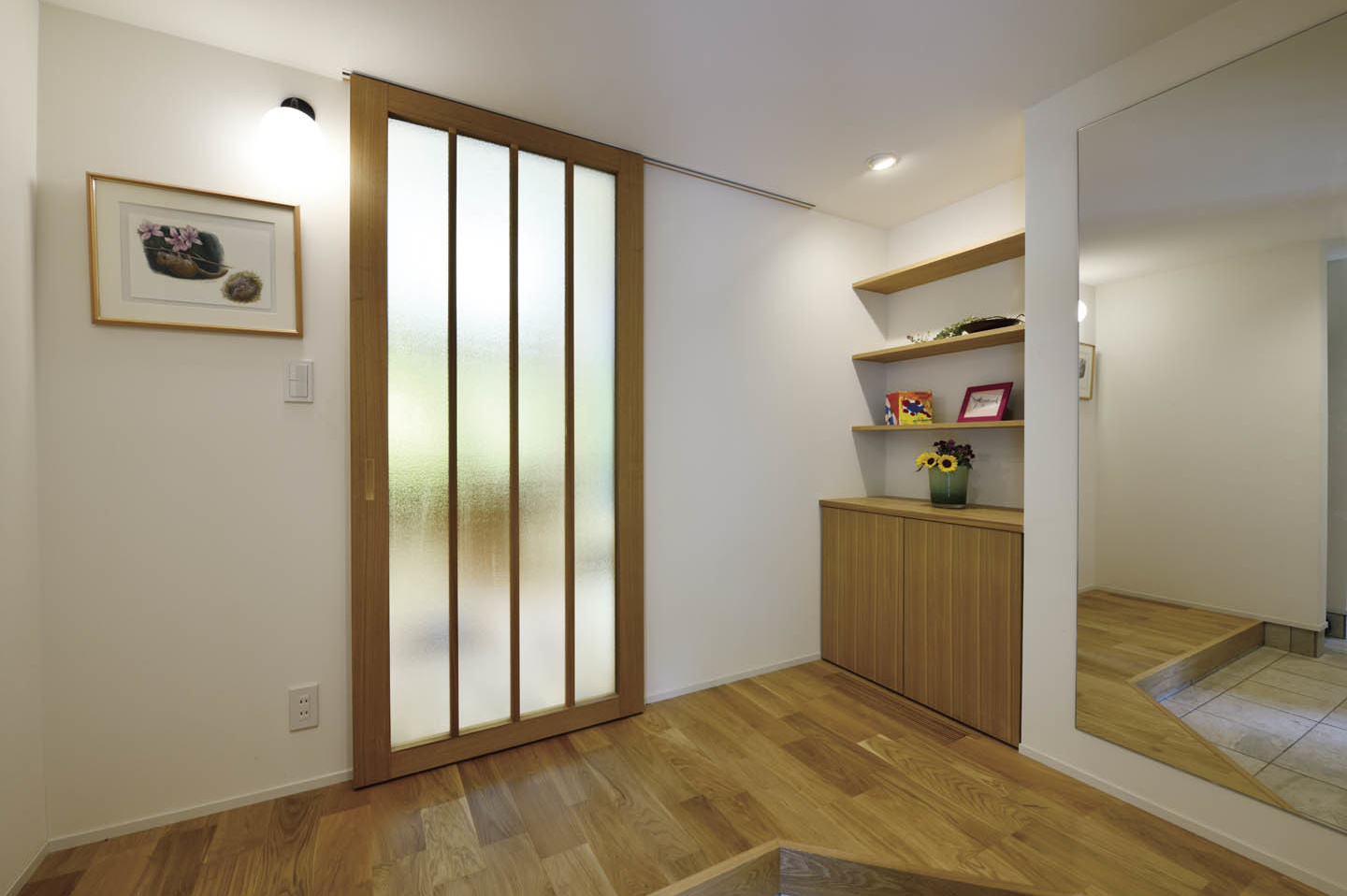 玄関ホールとダイニングを仕切る建具は造作建具を採用しました。