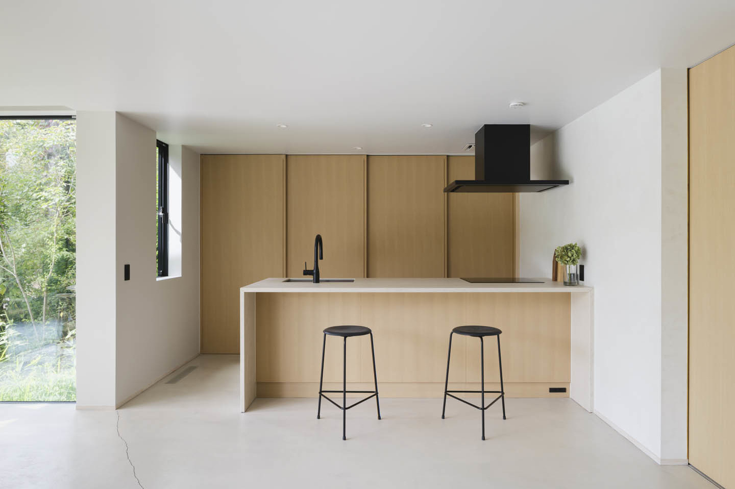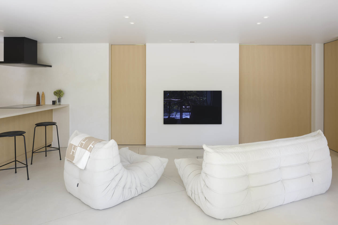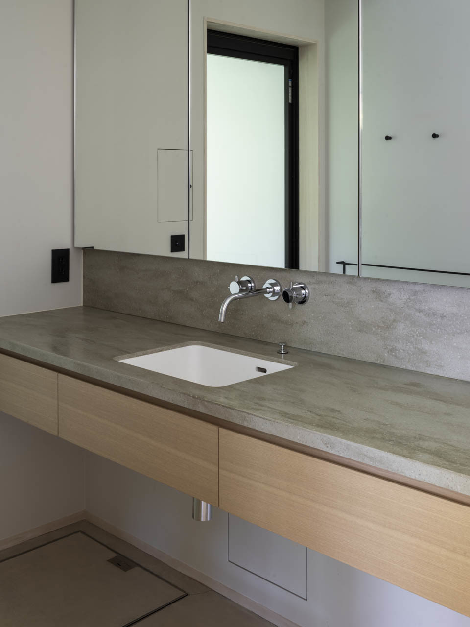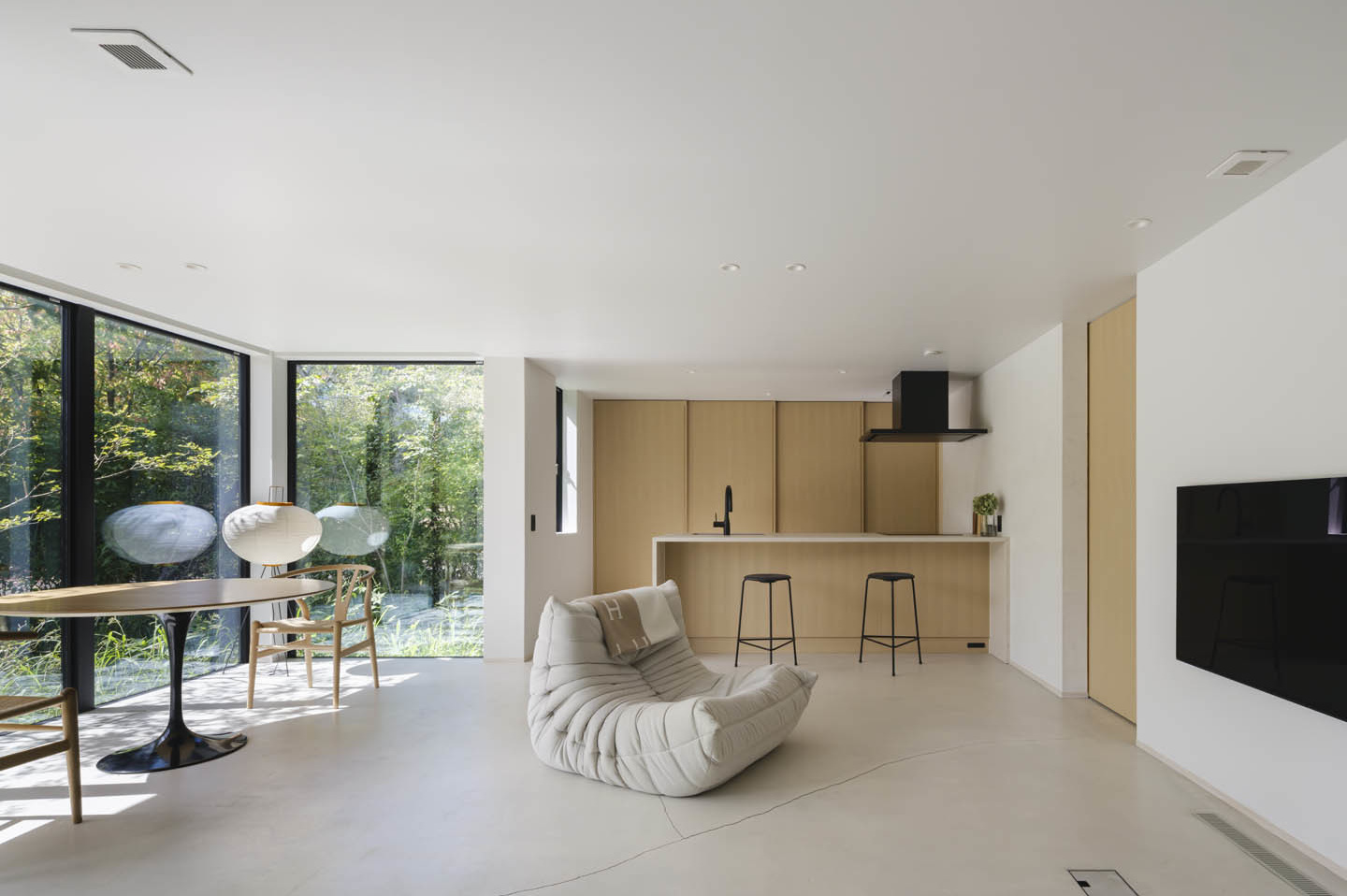 外にも中にも視線が抜けて、ゆったりと、伸びやかに見せる工夫をそこかしこに仕込むことで、時間の流れを忘れてくつろげる空間となりました。