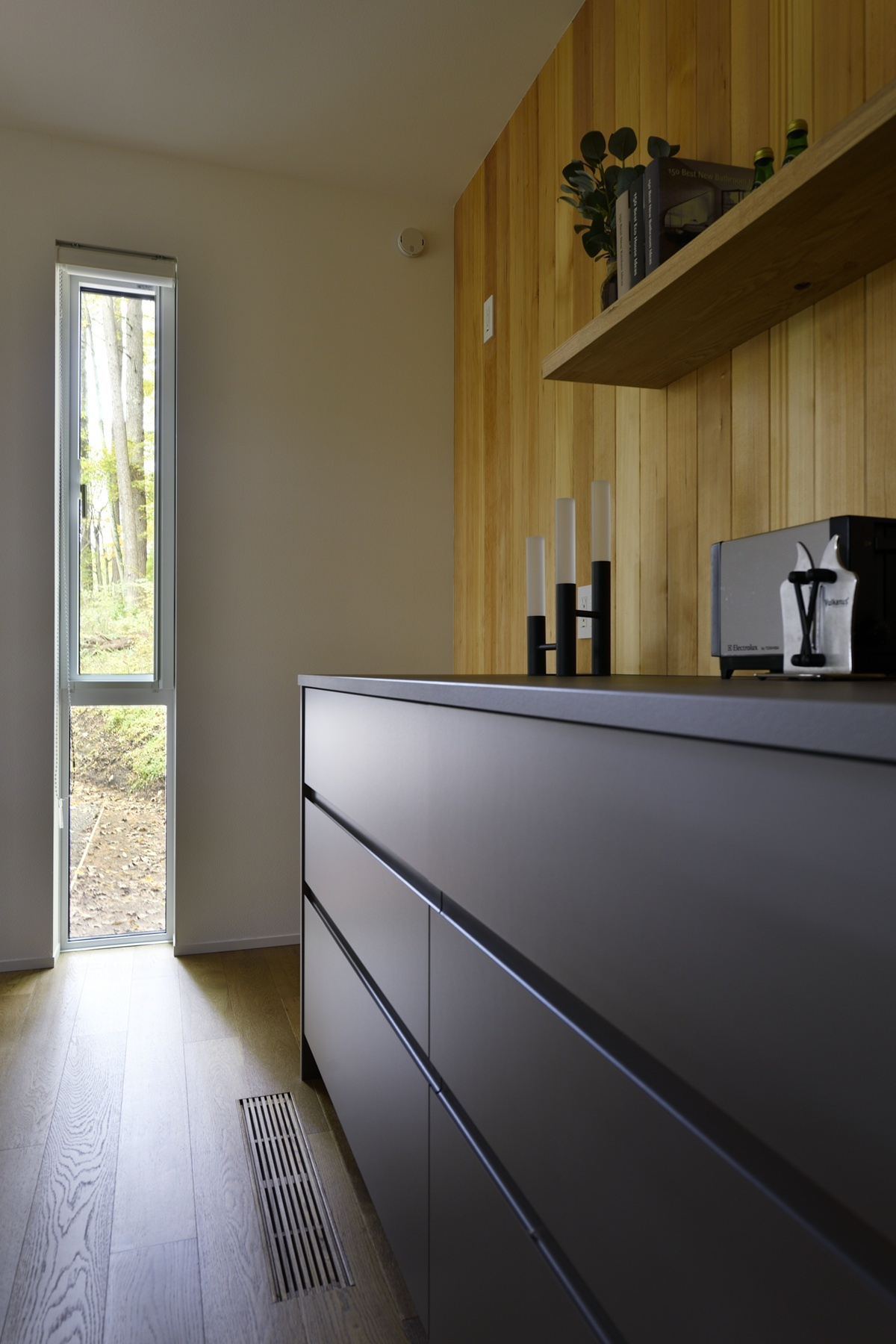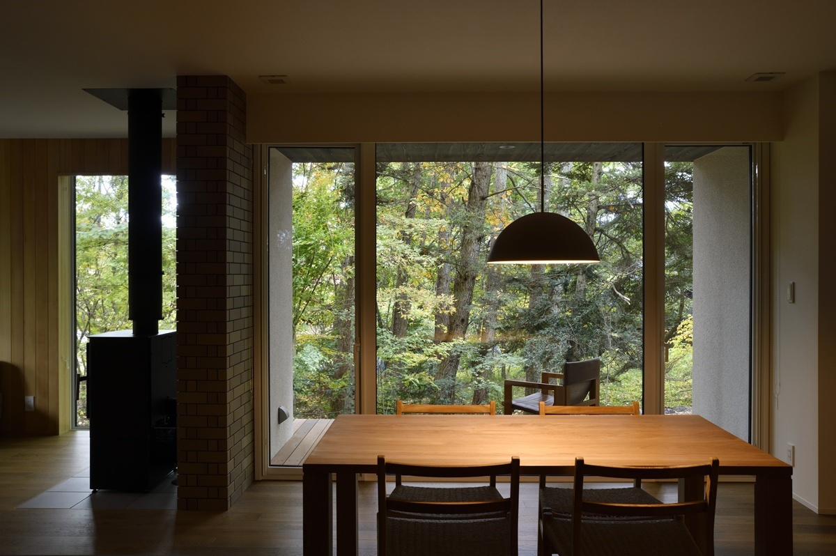 計算された窓の配置は、リビング、ダイニング、キッチン、どこにいても軽井沢の豊かな四季を感じさせます。