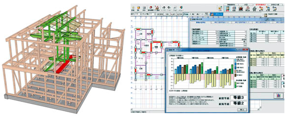 耐震等級3を実現するためのベースになっているのが「構造計算」です。私たちが実施している構造計算は「許容応力度計算法」と呼ばれるもので、設計した建物に地震力を与え、詳細な部材に至るまでそこにかかる力を求め、その力によって構造部材が支障をきたすような変形を起こさないかをチェックするものです。また、建物全体の変形についてもチェックを行ないます。