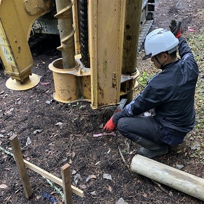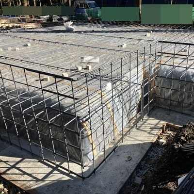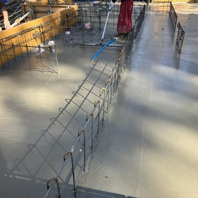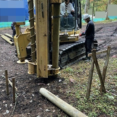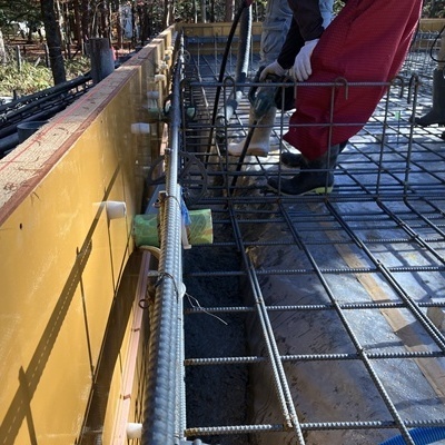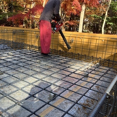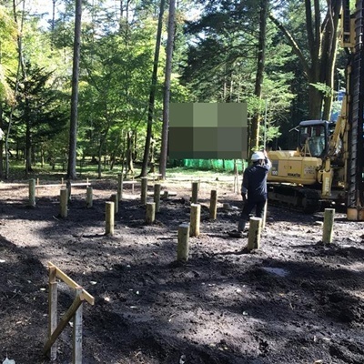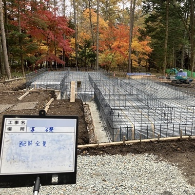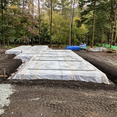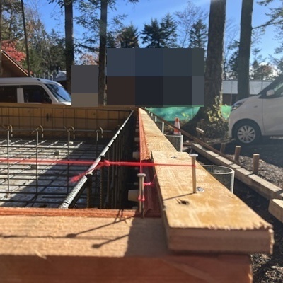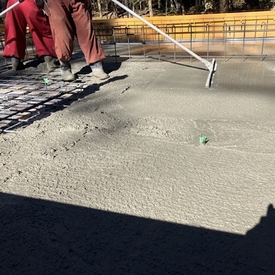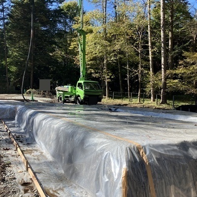型枠を解体しました。綺麗に打ちあがりました。 打設完了後、養生を行い作業完了です。 立上り部分にレベラーを流し込み平滑に仕上げていきます。 立上りの打設状況です。 立上りの打設状況です。 アンカーボルトの設置を行いました。 基礎の全貌が見えてきました。 立上り部分の型枠作業状況です。 打設完了です。 均し作業が終わった所から、養生の為シートを被せます。 均し作業状況です。 コンクリートの均し作業状況です。 コンクリートの打設状況です。外周面には止水版を設置していきます。 振動機を使いコンクリートを流し込んで行きます。 ポンプ車を使い打設していきます。 コンクリートの受け入れ試験も打設前に行います。 打設前に落ち葉養生を行いました。 型枠の通りを確認しました。 この時期は落ち葉がとても多いので、定期的に清掃して作業を進めます。 外部型枠の建て込み作業が始まりました。 第三者機関の配筋検査を実施しました。 配筋状況の全景です。 スラブ筋の確認状況です。 内周部の配筋状況です。 配筋完了後、太さ、本数、ピッチなどを確認します。 配筋状況です。 外周部の鉄筋から組み上げていきます。 配筋作業が始まりました。 きれいに打設されました。 打設をしながら、平滑に仕上げていきます。 捨てコンクリートの打設を行いました。 転圧完了後、防湿シートを敷きました。 転圧が完了しました。 転圧後の高さ確認です。 転圧の施工状況です。 砕石部分に転圧を行います。 砕石を敷きならべています。 根切底の確認をしています。 杭も図面通りの位置で確認できます。 外周部の地中梁部分を掘り進めていきます。 基礎工事に着手しました。 杭工事が、完了しました。 杭の高さを確認しています。梁部分、スラブ下部分で、高さの高低差があります。 打設後、杭の高さを確認していきます。 施工機のモニターにて、深さ、圧力等を管理していきます。 杭天端に、鉄板を設置します。 杭が支持層まで到達したのち、切断して防腐処理を行います。 杭の打設状況です。 杭芯に合わせて杭をセットします。 杭の施工機の全景です。 杭の材料が、現場に納品されました。 杭工事に先立ち、杭の位置出しを行いました。 敷地の整地が終わりました。 伐採後、伐根作業に移ります。 伐採した木を丸太にして搬出していきます。 伐採状況です。 工事に先立ち伐採工事を開始しました。 林間のモダンスキーム 工事概要在来軸組工法 平屋建て2025年9月着工 2026年5月竣工予定所在地:軽井沢町