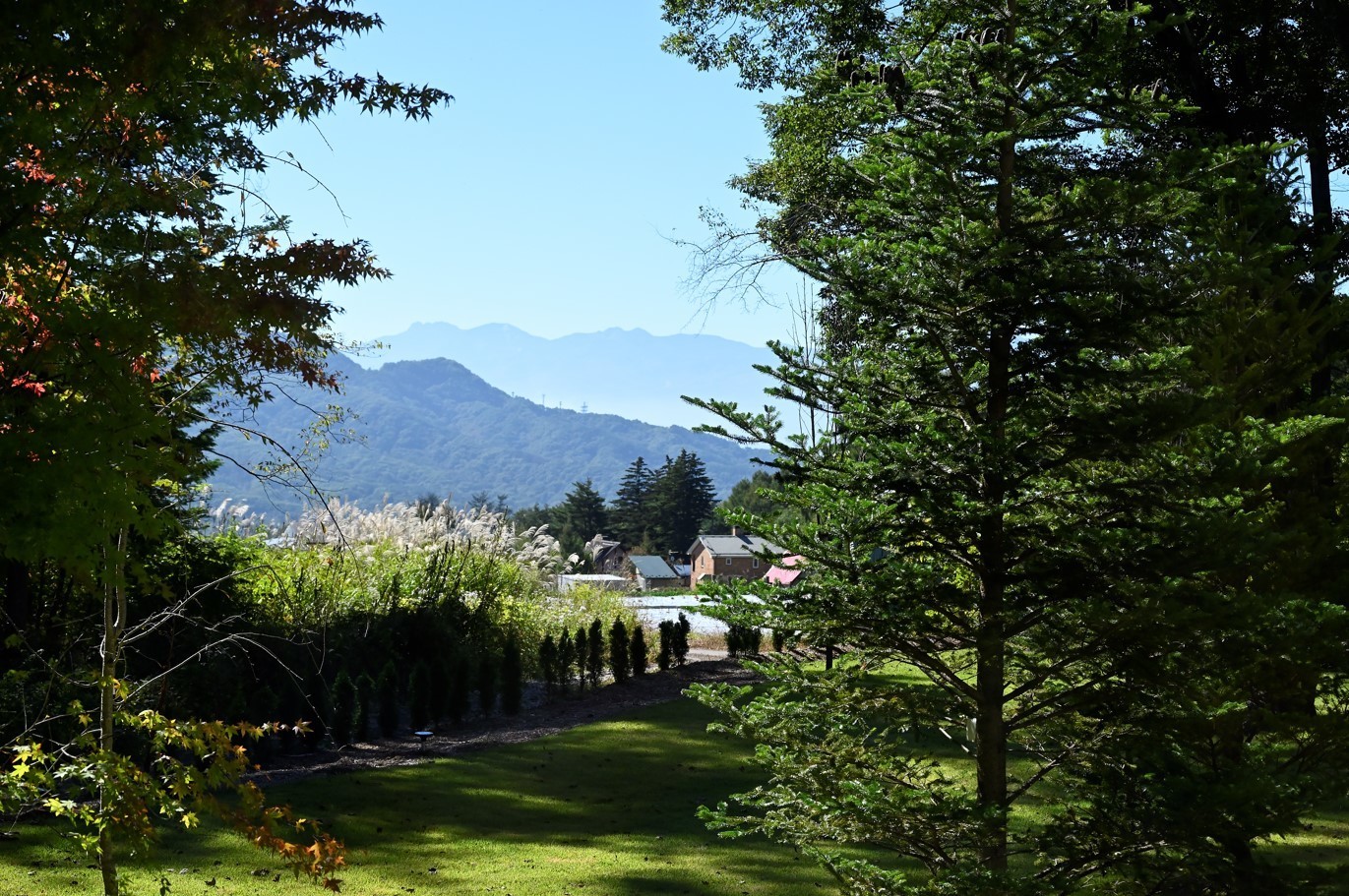 軽井沢では珍しく、遠方の景色が楽しめ、近景には木々が生い茂り、遠・近景の両方が楽しめる敷地です。