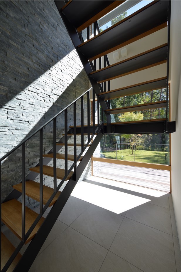 一部吹き抜けている玄関ホールと、隣接する階段ホールの窓からは、温かい陽が差し込み、床暖房をつけずとも、暖かくお過ごしいただけるよう工夫しています。
