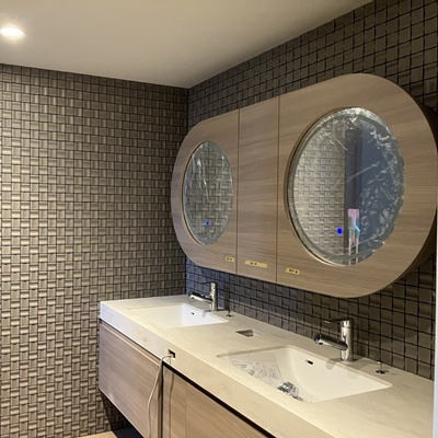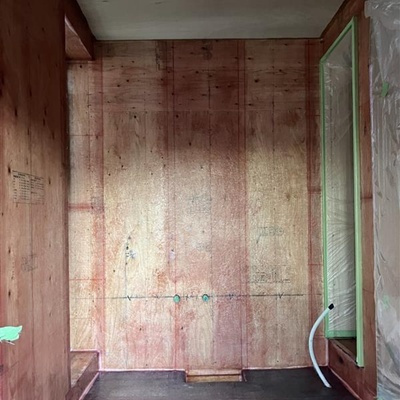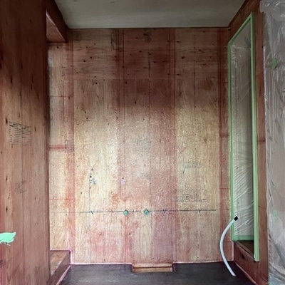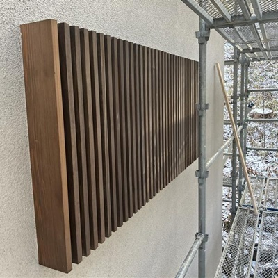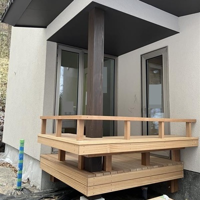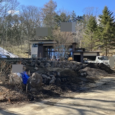 外構工事も着々と進んでいます。石積みと土の搬入が進み、お庭の形が見えてきました。 和室に畳が敷かれました。い草の心地よい香りが広がっています。落ち着いた壁紙の色合いと障子からの程よい光が素敵です。 内部の造作も進んでいます。 パッシブエアコンや冷房用のエアコンを取付けました。配管の凍結防止のためにも試運転を続けていますが、弱めの運転でも中で作業するには暖かすぎるほどよく効いています。 洗面所の様子です。家具やタイル、照明が付き恰好良い仕上りになりました。 浴室の防水工事を行いました。合板下地にFRP防水を施工しています。 鉄骨階段の手すりを取付けました。スリムな手摺なので、取付の際に支えておくのが難しいものでしたが、息を合わせて綺麗に取り付けることができました。 浴室横のテラスができました。加工の難しいセランガンバツ材でしたが、複雑なベンチ部分もうまく仕上がりました。 和室窓外の格子をはめ込みました。あらかじめ仕込んでおいた枠にぴったりと入りました。綺麗な仕上がりです。 外部の仕上げも進んでいます。タイルと左官の仕上げができ、木枠を塗装します。 ガス暖炉を設置しました。周りの仕上げはタイルなので、ここから下地で囲っていきます。 既製品枠と間仕切り壁の作業が進んでいます。各部屋の形や大きさが見えてきました。 内部の化粧材を取り付けています。 フローリング張りの様子です。 肌触りの良い綺麗なフローリング材です。傷にならない様に養生をしながら進んでいます。 外壁の下地サイディングが完了しました。 外壁の下地になるサイディングを張っています。 軒天下地を取り付けています。 外壁の通気胴縁を取り付けました。外壁の断熱材や気密処理が見えるのはこの段階が最後になります。 断熱材施工完了後シートを張り、2階の天井下地を組んでいます。 玄関ドアを取付けました。外壁の仕上がり位置を元に左右と高さの位置を調整してしっかりと固定します。 外貼り断熱も進んでいます。外壁全面に貼り付け、防水気密テープを全ての隙間と木部に貼り付けます。 床下の断熱を施工しました。厚い断熱材を隙間なく全面に敷き込んでいます。床束周りにも断熱材を充填しています。 屋根板金屋根板金を取付けています。 破風(はふ)破風板を取付けています。斜め破風です。 2層目垂木屋根として見える2層目の垂木と野地を施工しています。 屋根断熱1層目の屋根の上に屋根断熱を敷き詰め、防水気密テープで隙間なく止めていきます。 1層目垂木(たるき)1層目垂木を並べ、野地板を敷いていきます。 建て方(たてかた)建て方の様子です。建物の大きさが見えてきました。 足場仮設足場を建てました。 材料プレカットされた構造材が搬入されました。 基礎完了外周を埋め戻して基礎工事が完了しました。 立上り部分を打設しました。 立上りの型枠を組みました。 ベースを脱型し、立上り部分の枠を組むための墨を出していきます。 ベースを打設しました。 基礎の鉄筋が組まれました。 捨てコンに墨を出し、ベースの枠を組んでいます。 捨てコンを打設しました。 墨出しに必要となる捨てコンクリートを打設するための枠を設置しました。 砕石を敷き、転圧して締め固めます。 基礎工事が始まりました。 基礎工事の段取りが始まりました。測量で出した建物位置を基に丁張を設置していきます。 杭頭処理の様子です。指定の高さで均して仕上げます。 杭打ちの様子です。直径60cmの杭を着々と打っていきます。 試験杭箇所の打設深さを確認しています。調査通りの深さに支持層があるかを確認し、打設を開始しました。 試験杭を打っています。今回はくし兵衛工法というコンクリート杭を打設する方法で行っています。 測量したポイントを基に杭を打つ箇所に印を設置しました。 地盤改良のために杭打機が入りました。 別荘地の一角に1戸建ての住まいを建てることになりました。傾斜を活かした素敵な住まいになります。 森の階層の家 工事概要SE構法 2階建て所在地:軽井沢町