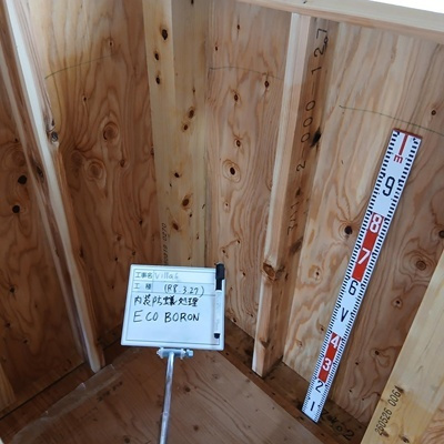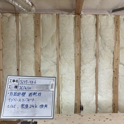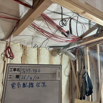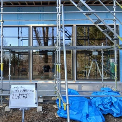 外周部壁断熱材詰めを行いました。壁面も綺麗に仕上がっています。 電気配線工事を行いました。 24時間換気設備を設置しました。本体から各部屋へ空気を送ったり回収して排気するダクトが伸びています。 天井断熱を施工しました。隙間なく詰められ、シートが綺麗に施工されています。 防蟻処理完了しました。薬剤が綺麗に浸透しています。 屋根板金完了しました。マットで綺麗な仕上がりです。 サッシの取り付けが完了しました。 玄関ドアの取り付けが完了しました。傷防止のため養生をしています。 外壁の防蟻処理が完了しました。 構造用合板を施工中です。 アスファルトルーフィングの施工が完了しました。 雪割りの取り付けが完了しました。 薪ストーブ煙突部分の雪割りを取付けています。 2層目の屋根垂木、野地板施工中です。 野地の上に断熱材を敷き並べます。 1層目の野地合板の施工状況です。 屋根垂木の施工状況です。 棟梁が架かりました。 母屋梁を施工しています。 小屋束を施工しています。 梁の施工状況です。 柱の建て込み後、梁材を架けて行きます。 柱の建て込み状況です。 床合板の施工後、床の養生を行いました。 1F床合板の施工状況です。 床下基礎断熱の施工状況です。 土台、大引きの施工状況です。 土台敷きが始まりました。基礎立上りに気密ゴムを敷きこみます。 基礎部分の養生を行い基礎工事の完了です。 建物周りの埋め戻しを行いました。 デッキ部分の束石を施工しました。 型枠脱型後の状況です。隙間なくコンクリートが打設されています。 立上り全体にレベラーを流し込みました。 立上り打設完了後、レベラーと言う材料を流し込み、天端部分をより平滑に仕上げていきます。 コンクリート打設状況です。 立上り部分の打設状況です。 立上り打設時のコンクリートの受け入れ試験を行いました。 型枠の建て込み状況とアンカーボルトの設置状況です アンカーボルトを設置しました。 立上りの枠を施工しました 打設完了後、コンクリートの表面を平滑に仕上げていきます。 耐圧盤の打設状況です。バイブレーター(振動機)を使用してコンクリートを流し込んで行きます。 コンクリートの受け入れ検査の状況です。 耐圧盤打設前に型枠の通りをチェックしました。 第三者機関による配筋検査も実施しました。 配筋のチェック状況です。 配筋の本数、ピッチ、太さなどをチェックします。 配筋の施工状況です。 配筋作業が始まりました。 捨てコンクリートの打設が完了しました。 捨てコンクリートの打設前準備が完了しました。 転圧終了後、防湿フィルムを施工します。 砕石の高さを確認しながら、転圧をします。 掘削をして砕石を敷き並べていきます。 基礎工事の開始です。所定の位置に杭が確認できました。 施工機の全景です。全部で56本施工しました。 杭の打設後、高さを確認し杭天端に鋼製のキャップを設置します。 杭の打設後、杭のずれを確認します。 杭の施工状況です。 杭芯に杭をセットして垂直を確認しながら施工していきます。 杭打設用の施工機です。 今回は木杭をを採用しました。 杭芯を出しました。 地盤調査の結果、地盤補強の為杭工事を行います。 南面の景色が抜ける心地よい追分の森の一角で、高性能分譲別荘が着手となりました。 Villa-Thermal-Ⅵ 工事概要在来工法 平屋建て2025年7月着工 2026年7月竣工予定所在地:軽井沢町